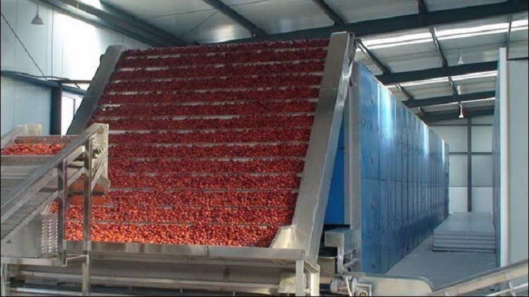 是將物料均勻地平鋪在網(wǎng)帶上,網(wǎng)帶采用12-60目的鋼絲網(wǎng)帶,由傳動裝置拖動在干燥機(jī)內(nèi)往返移動,熱風(fēng)在物料間穿流而過,水蒸氣從排濕孔中排出,從而達(dá)到干燥的目的,箱體長度由標(biāo)準(zhǔn)段組合而成,為了節(jié)約場地,可將烘干機(jī)制成多層式,常見的有二室三層、二室五層、長度6-40m,有效寬度0.6-3.0m。